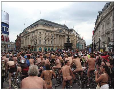 postcard depicting "Piccadilly Circus 2005" and an oversized